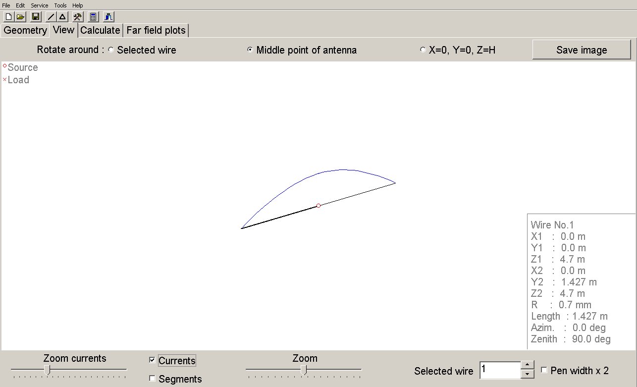 Ik heb de dipool twee keer getekend. Een keer als bijna ideale dipool, horizontaal en hoog hangend boven reele grond. Als een dipool resonant is dan is hij 73 ohm. De swr is dan 1,46 op zijn best. Als ik hem korter of langer maak kreeg ik het niet beter.