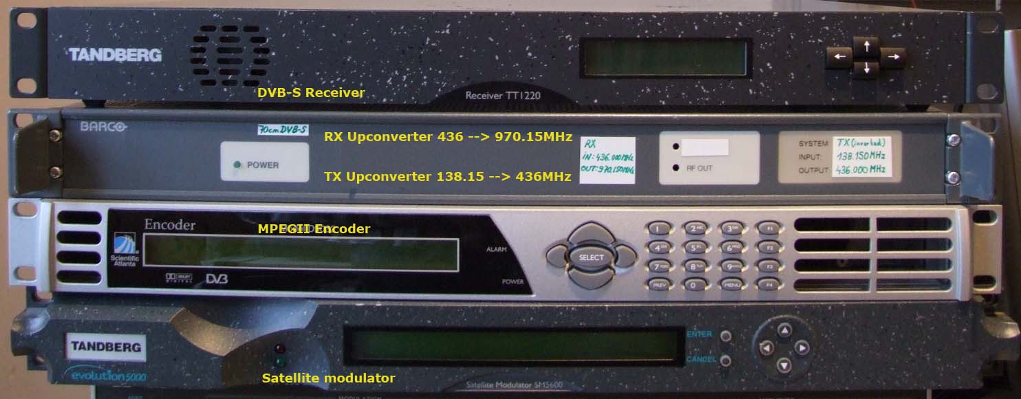 -een TX Upconverter die het signaal van de Satellite modulator, ingesteld op -10dBm @138.15MHz , omzet naar +10dBm@436MHz (LO = 574.15MHz).