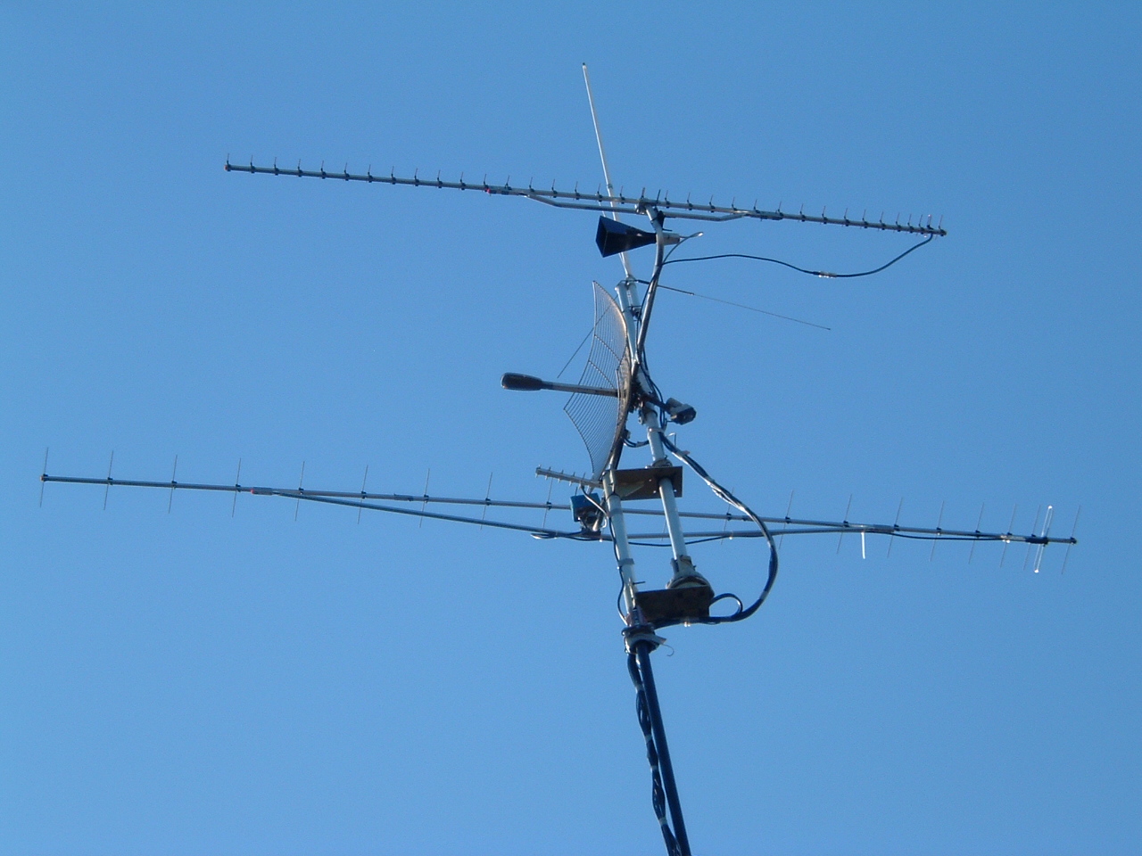 Nog leuker was een foto van de HB9CV kabelgootbeam geweest, maar de katten zijn daar mee aan de haal geweest, het ding is spoorloos ...