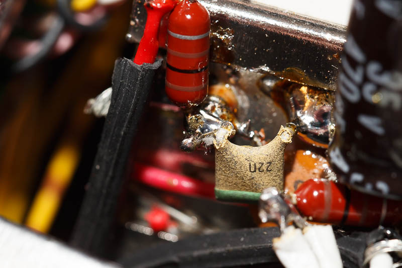 - Er zitten verschillende 220uF condensatoren in, let op de spanningswaarden.